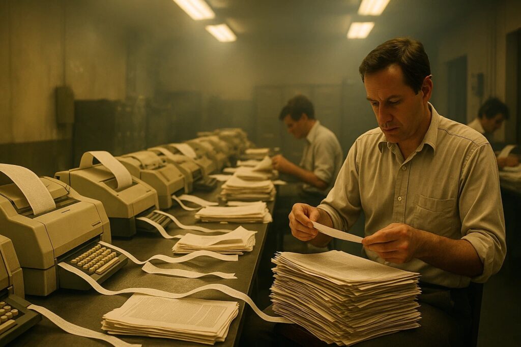 Wie frĂĽher, wenn die Fernschreiber nicht stillstanden und das Papier sich auf den Tischen tĂĽrmte,